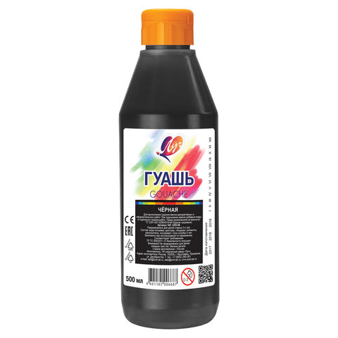 Гуашь художественная 1 шт. "Классика", 500 мл, черная, пластиковая бутылка, дозатор