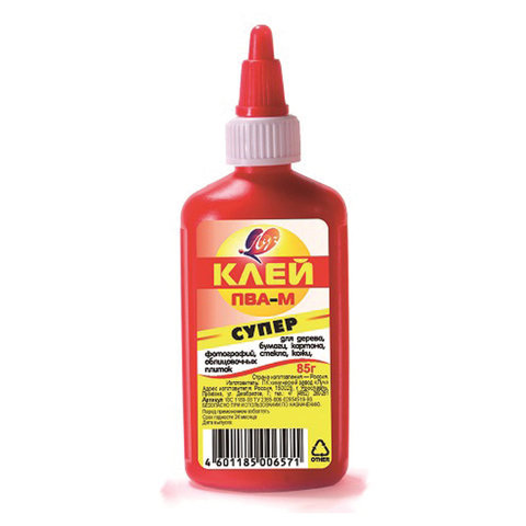 Клей ПВА-М "Супер" (бумага, картон, кожа, ткань, дерево, стекло, фотографии), 85 г
