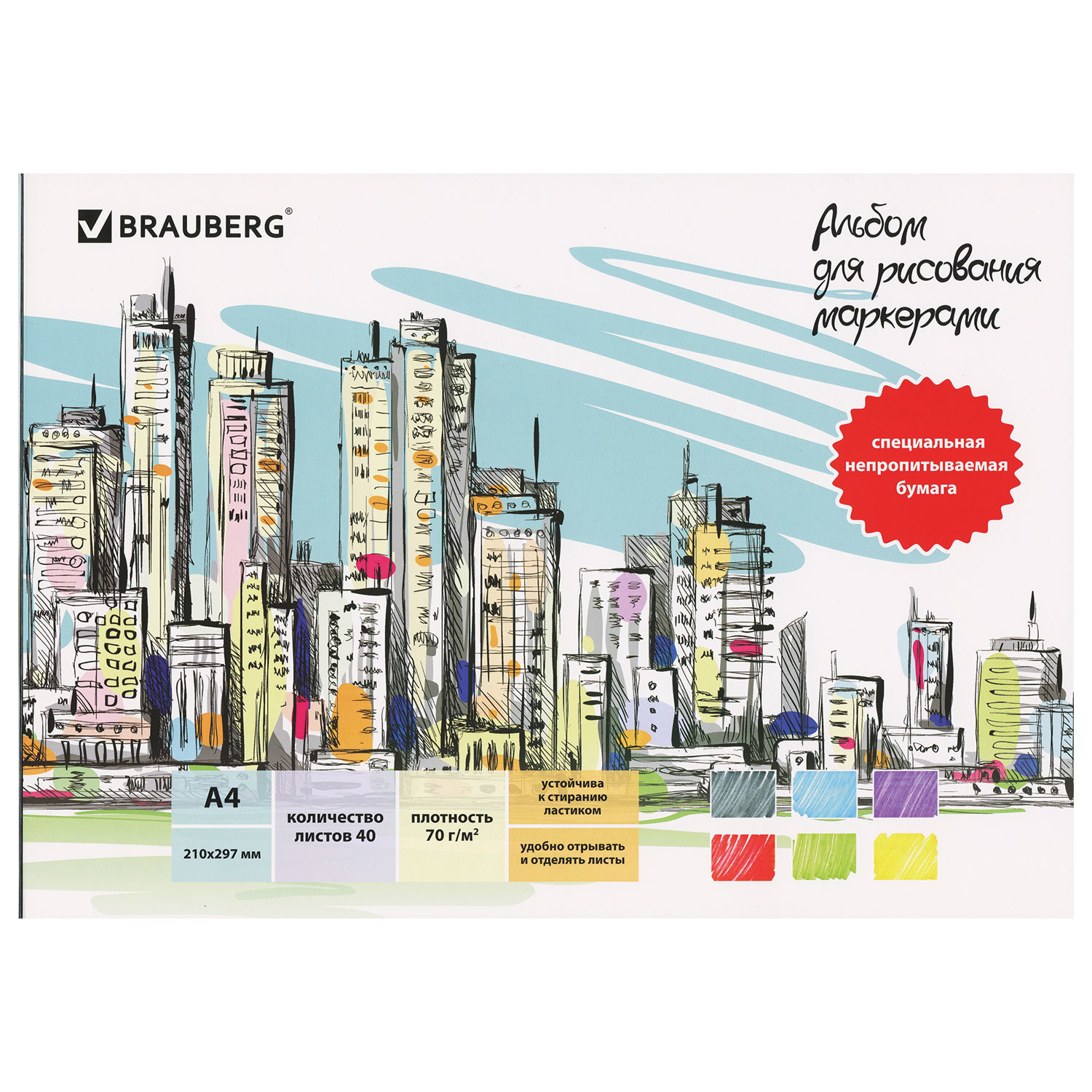 Альбом для рисования скетч-маркерами, фломастерами и гелевыми ручками. Внутренний блок - специальная гладкая НЕПРОПИТЫВАЕМАЯ бумага, предотвращающая протекание чернил. Бумага светостойкая, без кислот (не подвержена старению).