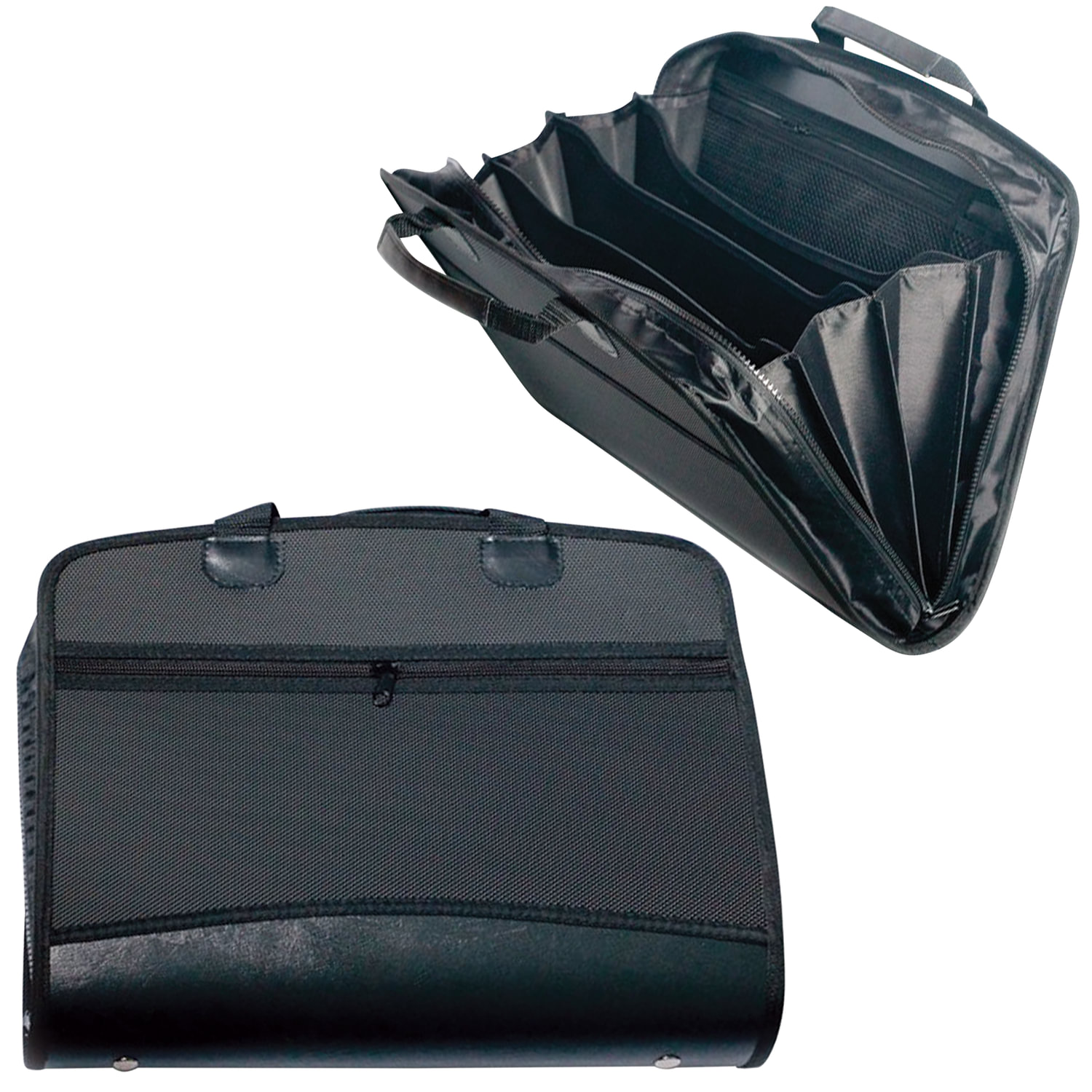 Портфель-сумка пластиковый, А4+, 375х305х60мм, на молнии, 4 отделения, 2 кармана, черный