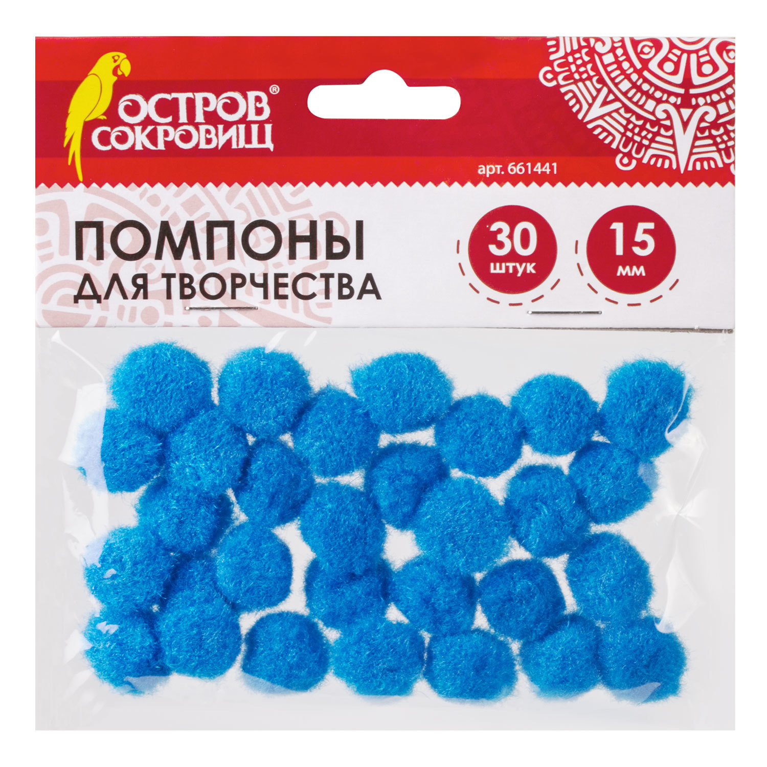 Помпоны для творчества, голубые, 15мм, 30 шт