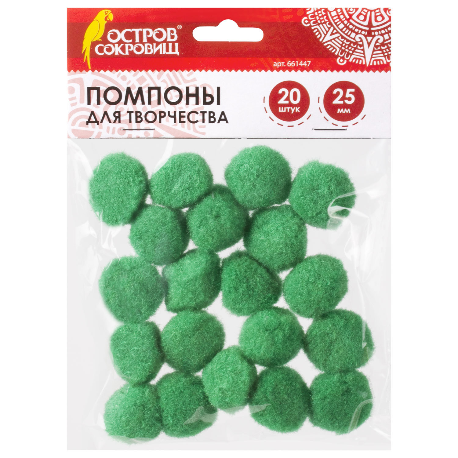 Помпоны для творчества, зеленые, 25мм, 20 шт
