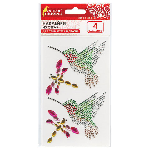 С помощью наклеек из страз ОСТРОВ СОКРОВИЩ можно декорировать поделки, детали интерьера, одежду и гаджеты, реализовать самые смелые творческие идеи. Качественный клеевой слой обеспечит надежную фиксацию на любых поверхностях.