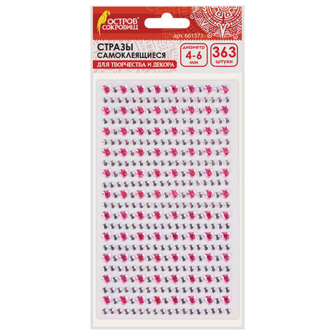 С помощью самоклеящихся страз ОСТРОВ СОКРОВИЩ можно декорировать поделки и аппликации, детали интерьера, одежду и гаджеты, реализовать самые смелые творческие идеи. Качественный клеевой слой обеспечит надежную фиксацию на любых поверхностях.