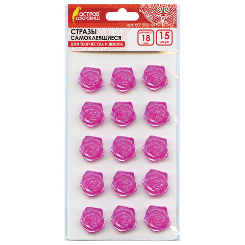 Стразы самоклеящиеся "Розы", розовые, 18мм, 15 шт, на подложке