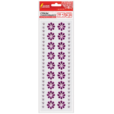 С помощью самоклеящихся страз ОСТРОВ СОКРОВИЩ можно декорировать поделки и аппликации, детали интерьера, одежду и гаджеты. Качественный клеевой слой обеспечит надежную фиксацию на любых поверхностях.