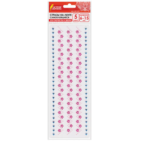 Стразы самоклеящиеся на ленте "Цветочная волна", 6-15мм, 5 лент, на подложке sela25