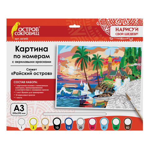 Картина по номерам А3 "РАЙСКИЙ ОСТРОВ", с акриловыми красками, картон, кисть