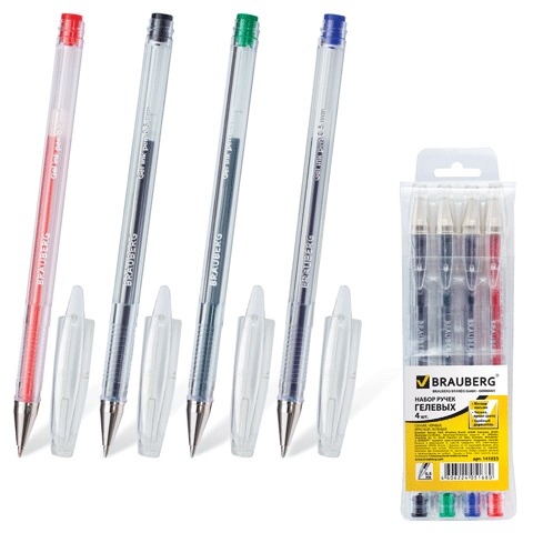 Ручки гелевые 4 шт, "Jet", узел 0,5мм, линия 0,35мм, (синяя, черная, красная, зеленая) sela25