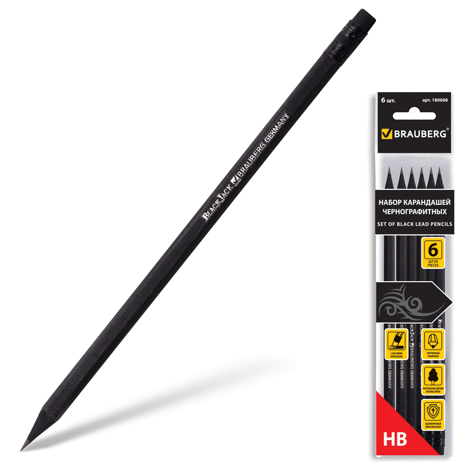 Карандаши чернографитные, Набор 6 шт, "Black Jack" ("Блэк Джек"), НВ, черные, дерево