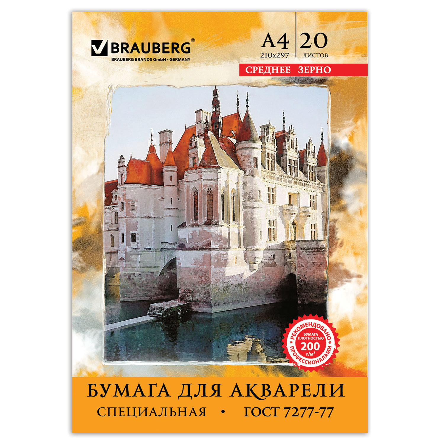 Папка для акварели А4, 20 л, внутренний блок 200 г/м2, бумага ГОСТ 7277-77
