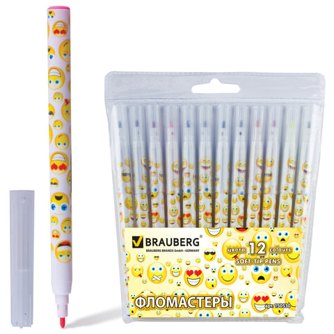 Практичные и безопасные фломастеры с изображением веселых улыбок. Полипропиленовый корпус значительно продлевает срок службы фломастеров, а вентилируемый колпачок не причинит вреда при попадании в дыхательные пути малыша.