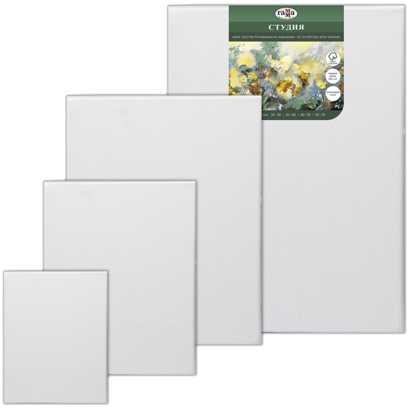 Набор хлопковых холстов предназначен для живописи масляными, акриловыми и темперными красками. Основа - натуральное полотно 100% хлопок. Это современный материал для живописи. Плотность 280 г/м2. В набор входят 4 холста: 24х30, 30х40, 40х50, 50х70 см. Акриловый грунт позволяет сохранить цвета неизменными, не допуская их прожухания. Модульный подрамник выполнен из сосны, размер 1,7*2,5 и 1,7*3 см, в комплект входит 32 клиньев для натяжки холста. Подойдет для студентов художественных школ и училищ, начинающих и профессиональных художников.