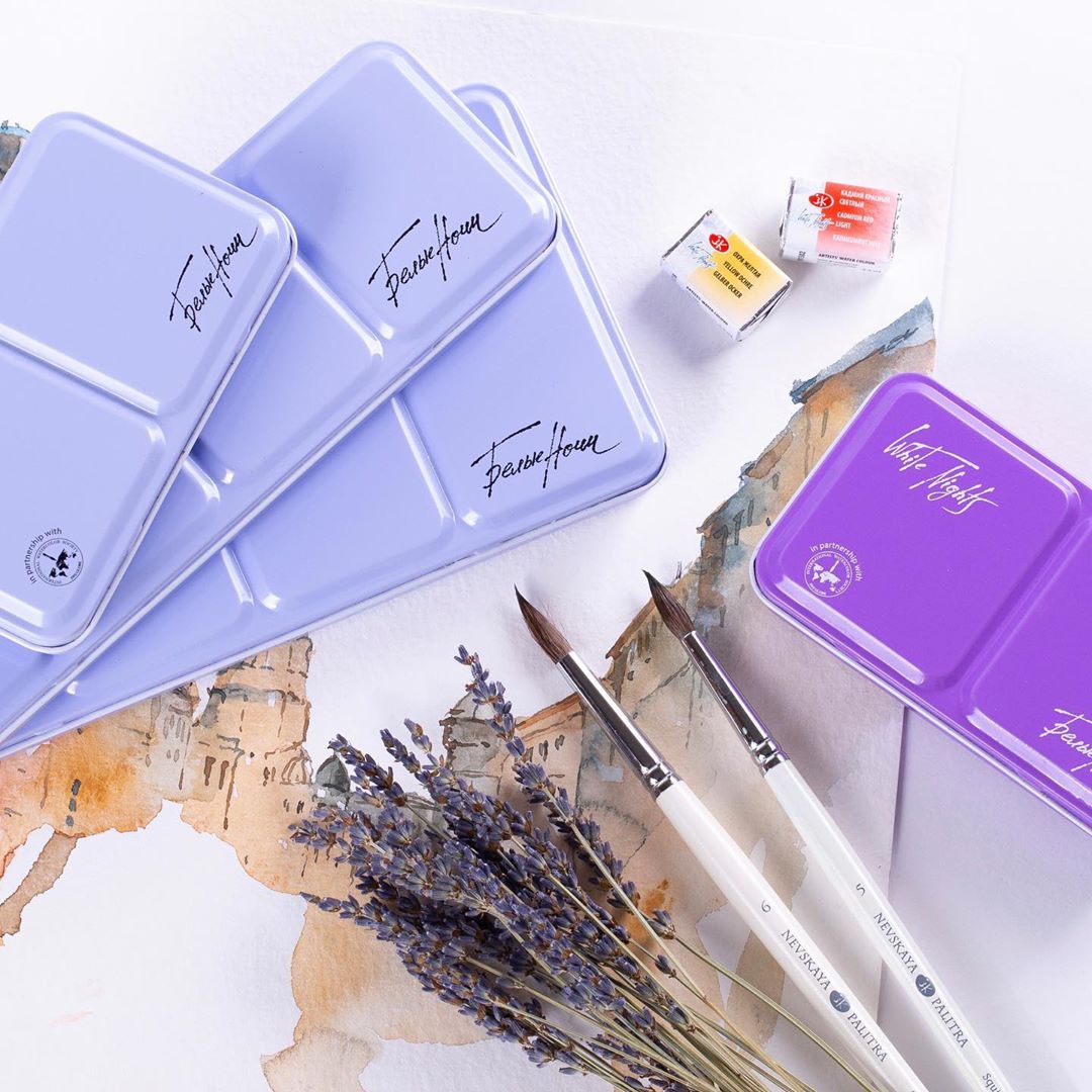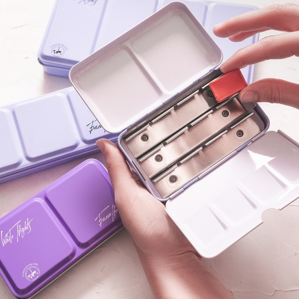 Пенал для акварели на 12 кювет с палитрой, металл, сиреневый
