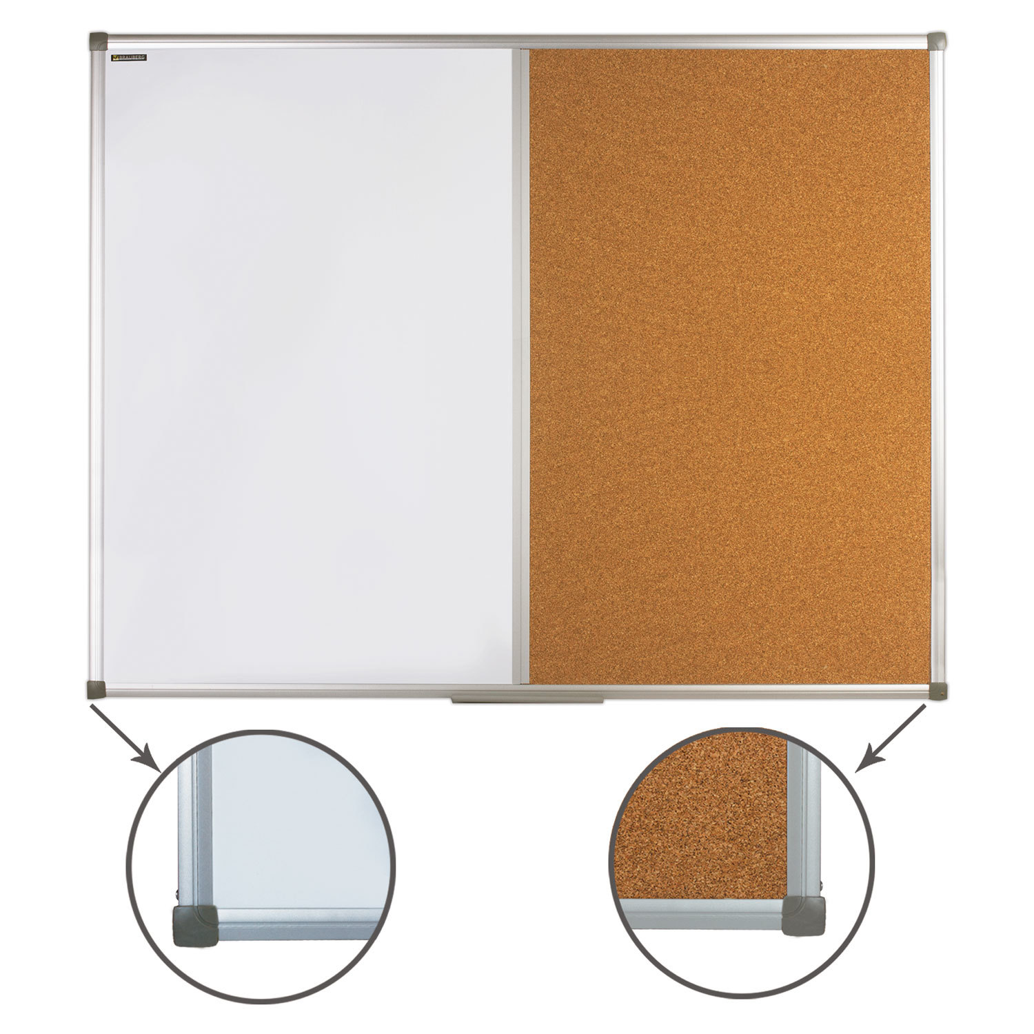 Комбинированная доска - магнитно-маркерная и пробковая доски в единой рамке – оптимальное решение для экономии пространства. Широко используется в организациях разного рода деятельности.