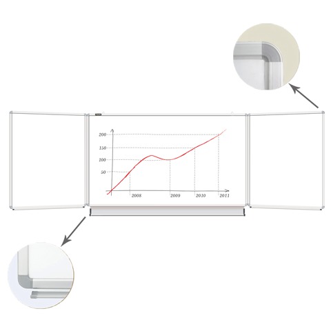 Трехэлементная настенная магнитно-маркерная доска широко используется в офисах и учебных заведениях. Белое лаковое покрытие предназначено для письма специальными маркерами для белой доски. Информацию можно разместить с помощью магнитов.