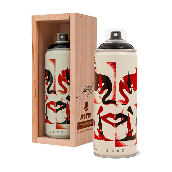 Лимитированная серия аэрозольных красок MTN 94 с дизайном от знаменитых артистов в сотрудничестве с Beyond the Streets. Шепард Фейри (род. 1970 в Чарльстоне, Южная Каролина). В 1989 году, когда в Школе дизайна в Род-Айленде обучался у своего бакалавра изобразительного искусства в области иллюстрации (который он заработал в 1992 году), Шепард Фейри создал наклейку «Andre the Giant has a Posse», которая впоследствии превратилась в арт-кампанию «OBEY GIANT». В 2008 году его портрет кандидата от Демократической партии Барака Обамы стал международно признанным символом надежды. С тех пор Фейри написала около 100 общественных росписей, стала одним из самых востребованных и провокационных художников в мире и изменила способы общения людей об искусстве и взгляде на городской пейзаж.