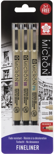 Набор капиллярных ручек Pigma Micron 3шт (0.5мм 0.8мм + Ручка Pigma Micron PN)