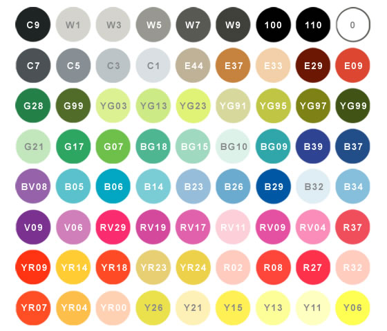 Набор состоит из оттенков: Y06, Y11, Y13, Y15, Y21, Y26, YR00, YR04, YR07, YR09,YR14, YR18, YR23, YR24, R02, R08, R27, R32, R37, RV04, RV09, RV11, RV17, RV19, RV29, V06, V09, BV08, B05, B06, B14, B23, B26, B29, B32, B34, B37, B39, BG09, BG10, BG15, BG18, G07, G17, G21, G28, G99, YG03, YG13, YG23, YG91, YG95, YG97, YG99, E09, E29, E33, E37, E44, C-1, C-3, C-5, C-7, C-9, W-1, W-3, W-5, W-7, W-9, 100, 110, 0 (Бесцветный блендер). Набор поставляется в удобном пластиковом боксе.