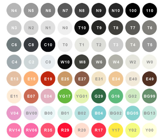 Набор состоит из оттенков: Y00, Y02, Y17, R17, R20, R29, R35, RV06, RV14, V04,BV00, B00, B01, B02, B04, BG02, BG05, BG13, BG99, G02, G16, G29, YG01, YG17, E04, E07, E11, E13, E15, E19, E25, E27, E31, E34, E40, E49, W-0, W-2, W-4, W-6, W-8, W-10, C-0, C-2, C-4, C-6, C-8, C-10, T-0, T-1, T-2, T-3, T-4, T-5, T-6, T-7, T-8, T-9, T-10, N-0, N-1, N-2, N-3, N-4, N-5, N-6, N-7, N-8, N-9, N-10, 100, 110. Набор поставляется в удобном пластиковом боксе.