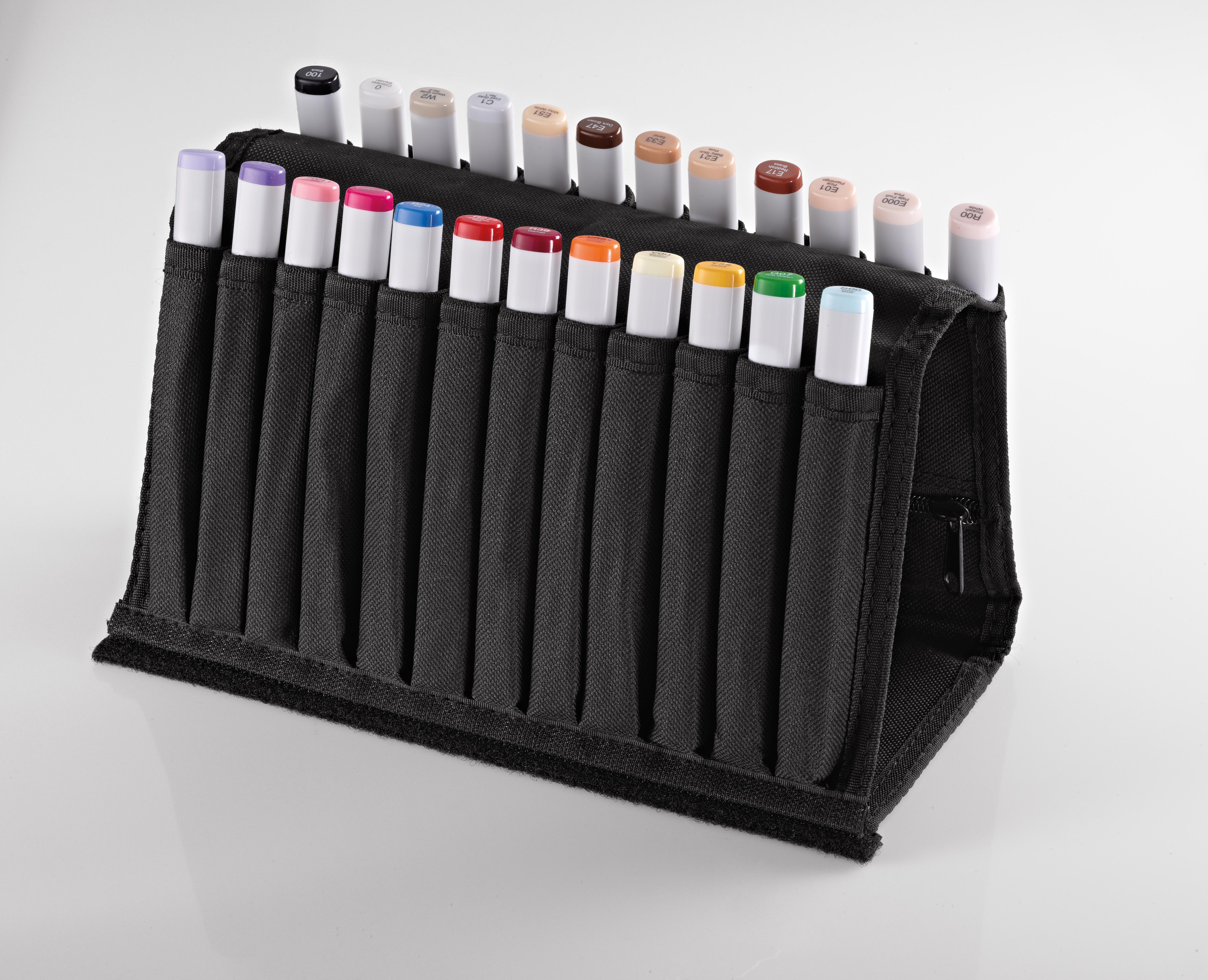 Цвета в наборе: E47, E51, C-1, W-2, 0 (бесцветный блендер) 100, B24, E000, E01, E17, E21, E33, R39, YR04, Y00, Y35, G07, B00, BV02, V17, RV11, RV25, R00, R27. Набор поставляется в удобном тканевом пенале с европодвесом.