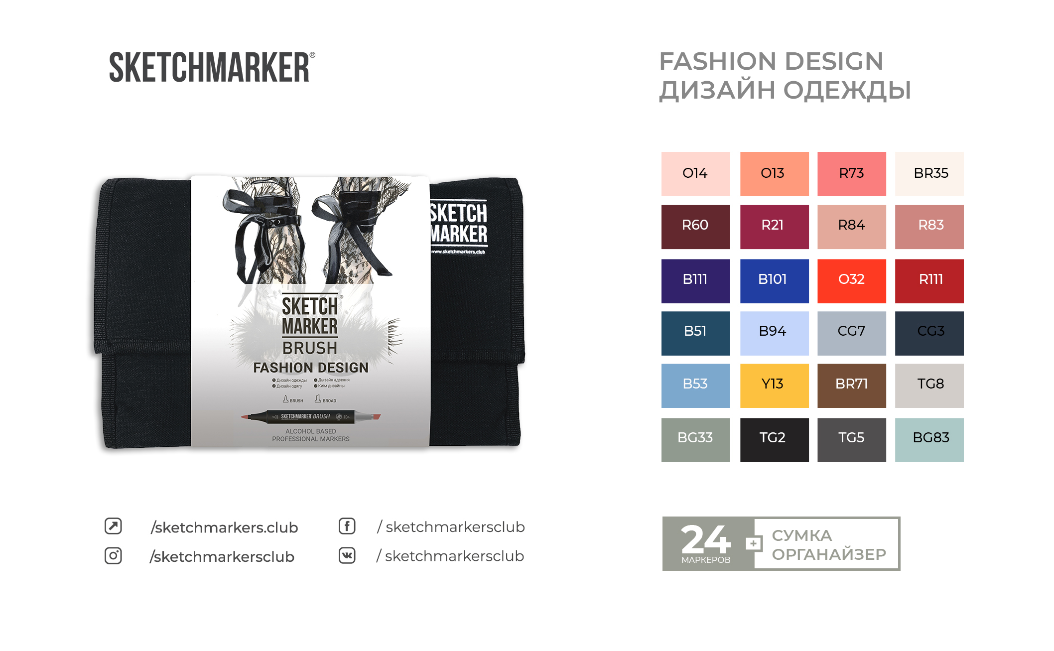 Набор маркеров Sketchmarker BRUSH Fashion design 24шт дизайн одежды + сумка органайзер