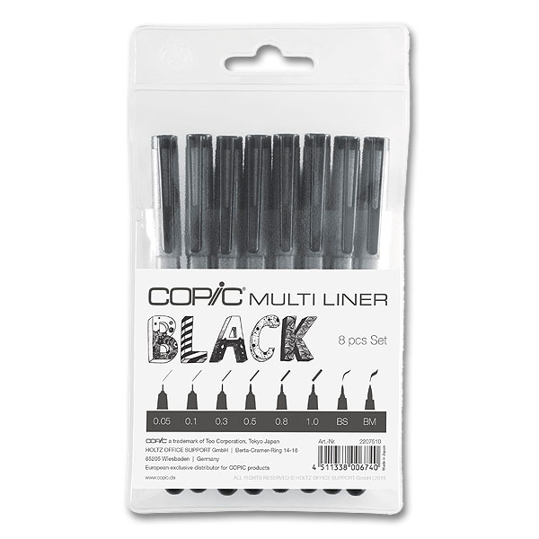 Универсальные чернильные ручки Multiliner на основе пигмента. Совместима с маркерами Copic. Ручки водостойкие, поэтому после высыхания линия не будет размываться.