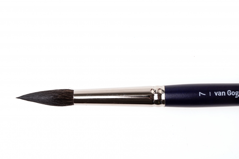 Акварельные кисти van Gogh изготовлены из натурального волоса сибирской белки. Беличья кисть прекрасно держит форму, не ломается, хорошо впитывает влагу и легко моется под струёй воды. При соприкосновении с бумагой волоски не разъединяются и ведут чёткую линию, без ""полос"". Кисть из натуральной сибирской белки мягкая, тонкая и эластичная, мазки получаются сочными и яркими. При намокании такая кисть собирается в один плотный пучок, что подходит для кропотливой контурной работы. Её можно подолгу держать в воде.