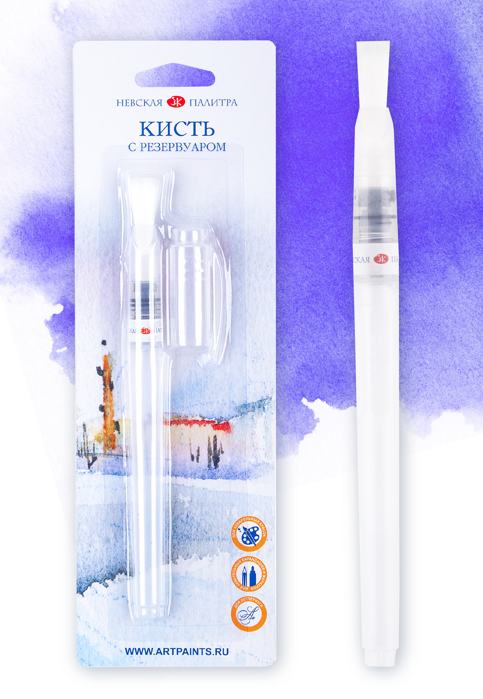 Кисть с резервуаром "Невская Палитра", плоская, №2 (7,5 мм)