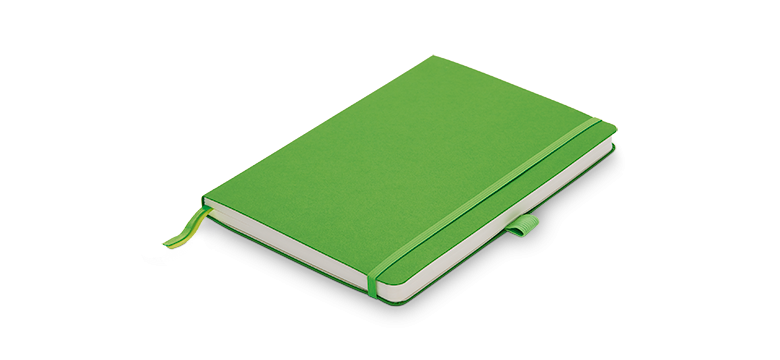 Прошитый книжный переплет, бумага 90 г цвета слоновой кости, отлично подходящая в т.ч. для перьевых ручек, с деликатной светло-серой линовкой LAMY (сплошные и пунктирные горизонтальные и вертикальные линии). Шесть матовых цветов, совпадающих с линейками LAMY safari: умбра, синий, белый, черный, розовый, зеленый. 192 страницы, петля для ручки и фиксирующая резинка, внутри задней обложки находится карман с клапаном для записок и карточек, две текстильные закладки: одна неоново-желтая, другая - в цвет обложки, 8 отрывных листов.