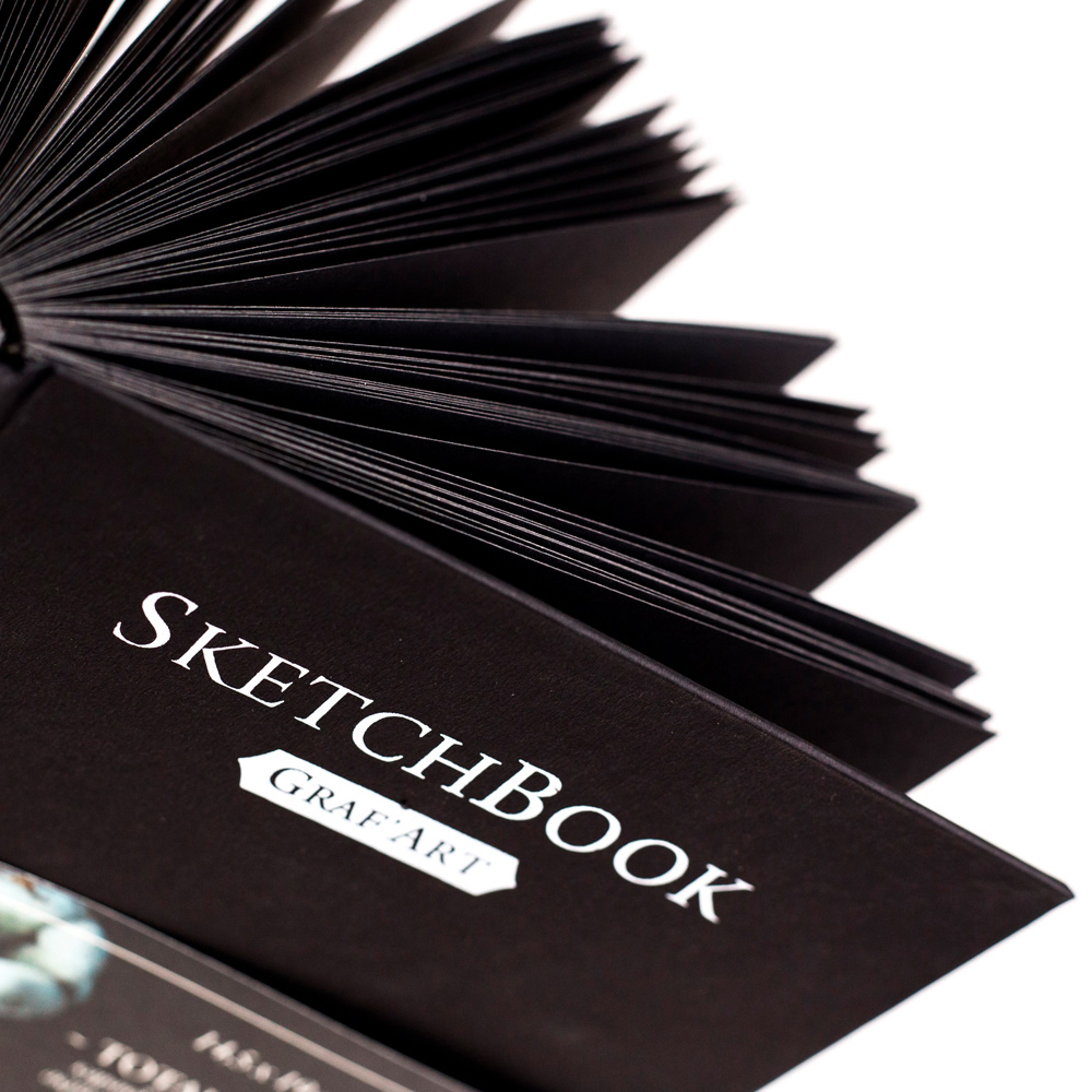 Скетчбуки с слегка шероховатой бумагой черного цвета плотностью 150 г/м. Отлично подходят для рисования карандашами, пастелью, акриловыми маркерами и белыми гелевыми ручками.