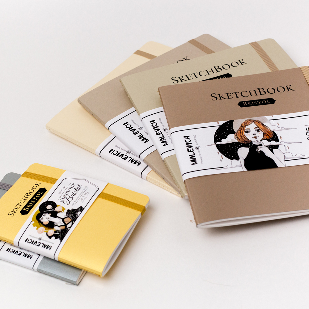 Bristol это белоснежная, экстра-гладкая бумага плотностью 180 г/м, которая отлично подходит для многослойного маркерного рисунка, идеальна для линеров, капиллярных ручек, рисования карандашом, а также туши. Хорошо подходит для рисования пером. Скетчбуки в классической сшивке серии Бристоль Гламур оформлены в обложках металических оттенков иммитирующих цвета драгоценных металлов, отсюда и название серии.