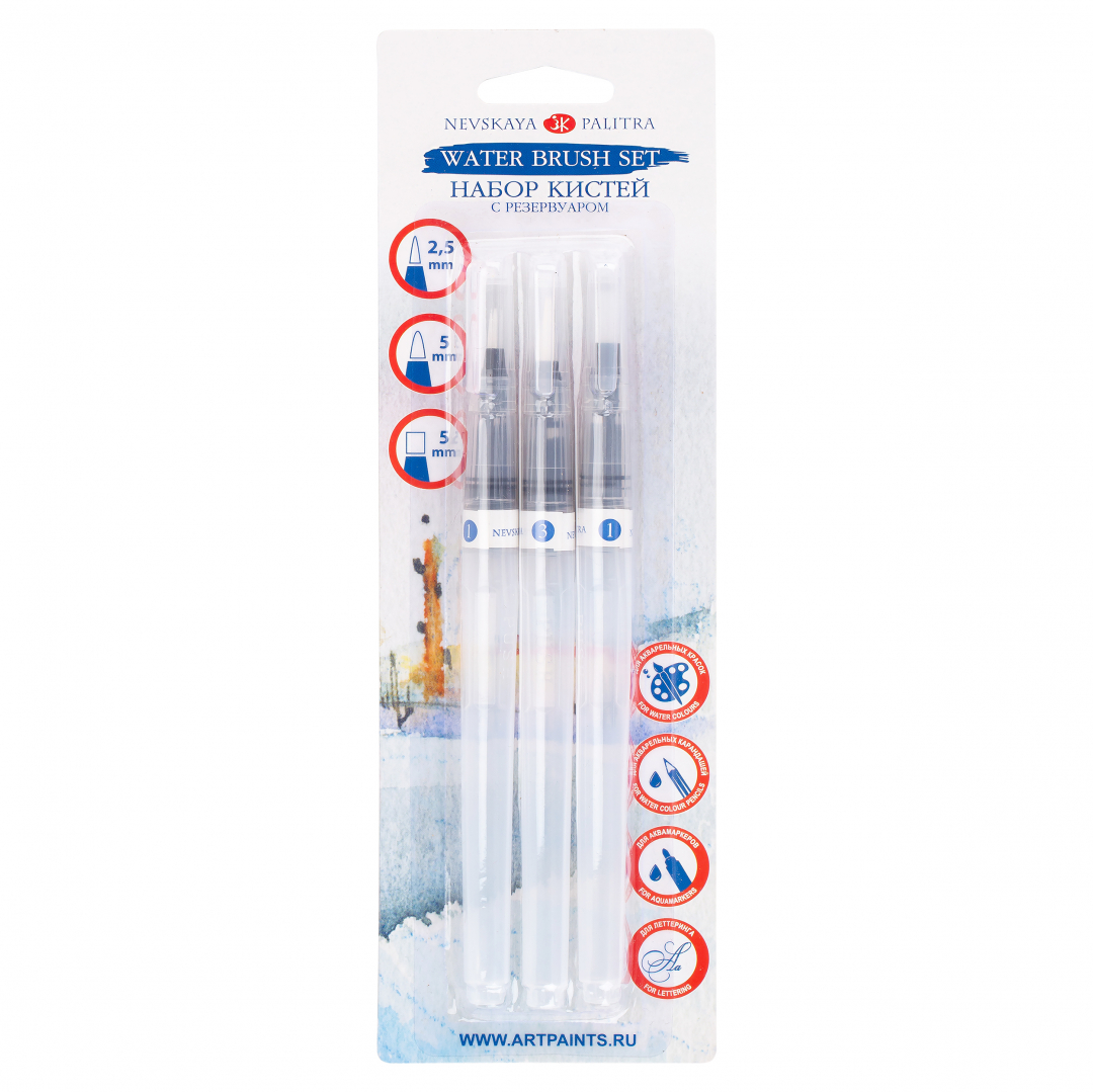 Набор кистей с резервуаром, круглая №1 (2,5 мм), круглая №3 (5 мм), плоская, № 1 (5 мм)