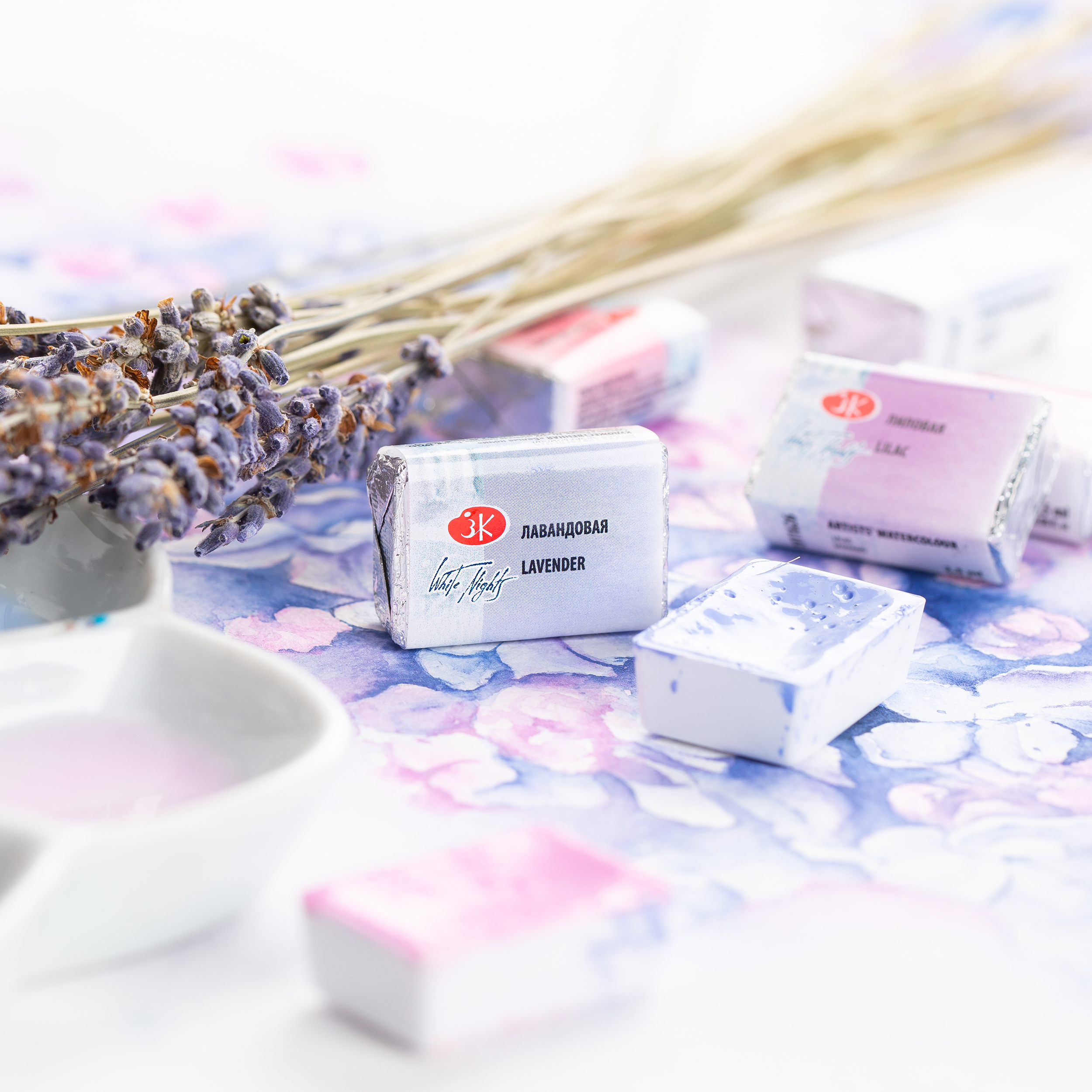 Новые цвета Белые ночи содержат в себе белила в пигментах. Краски получаются укрывистыми и пастельными. Художественные акварельные краски Белые ночи изготавливаются из тонкотертых пигментов и связующего из натурального гуммиарабика, признанного лучшим растительным клеем для приготовления художественных водных красок. Максимальная интенсивность цветового тона акварели, сохраняющаяся даже при разбавлении большим количеством воды, достигается благодаря высокой концентрации пигмента и тонкости его перетира.
