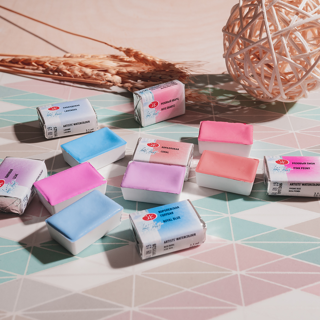 Новые цвета Белые ночи содержат в себе белила в пигментах. Краски получаются укрывистыми и пастельными. Художественные акварельные краски Белые ночи изготавливаются из тонкотертых пигментов и связующего из натурального гуммиарабика, признанного лучшим растительным клеем для приготовления художественных водных красок. Максимальная интенсивность цветового тона акварели, сохраняющаяся даже при разбавлении большим количеством воды, достигается благодаря высокой концентрации пигмента и тонкости его перетира.