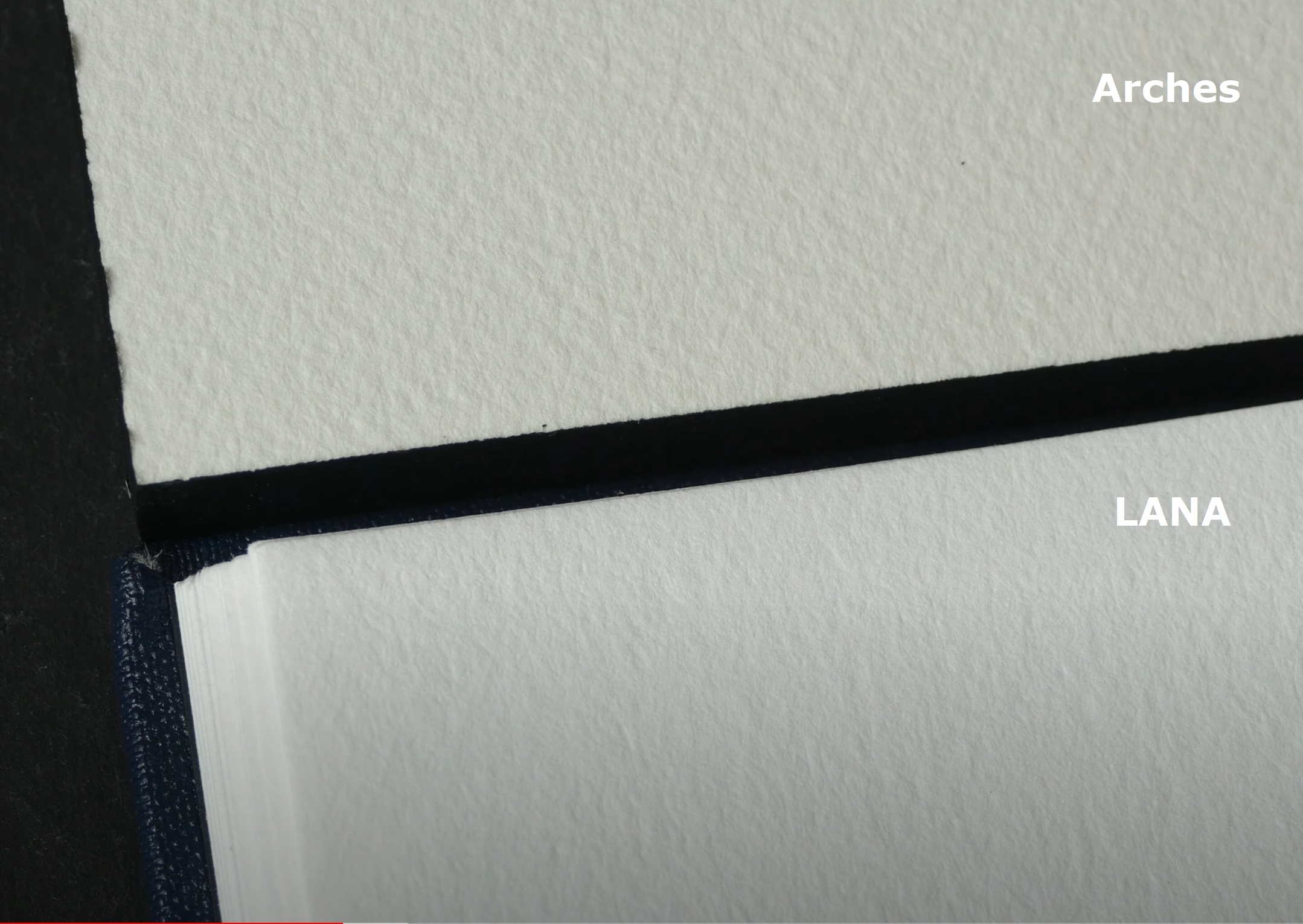 Сама поверхность более белая по сравнению с не совсем белой от Fabriano Artistico (Traditional) и Arches. Но лист не такой белый, если соотносить с ярко-белой акварельной бумагой.