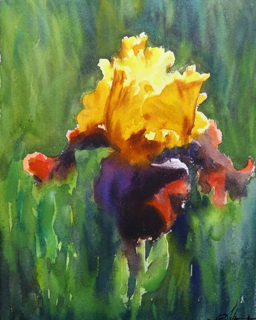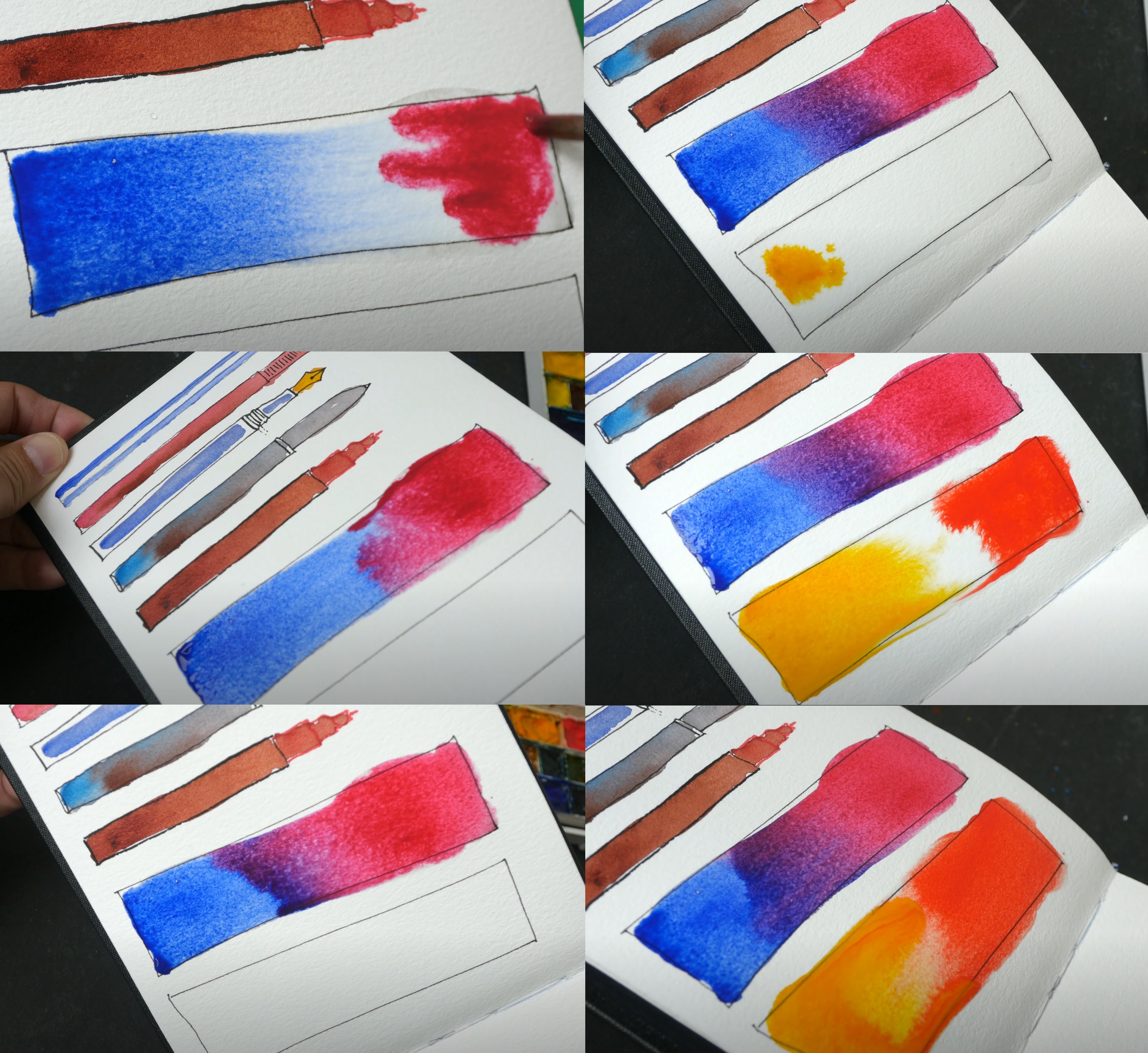 Совершенно сказочное перетекание одного оттенка в другой! Нет необходимости «доводить» градиент кистью, достаточно по увлажнённой бумаге нанести цвета и смешать их под наклоном (см. изображение). При высыхании видно, что градиент получается абсолютно бесшовным, равномерным и цвета остаются звенящими.