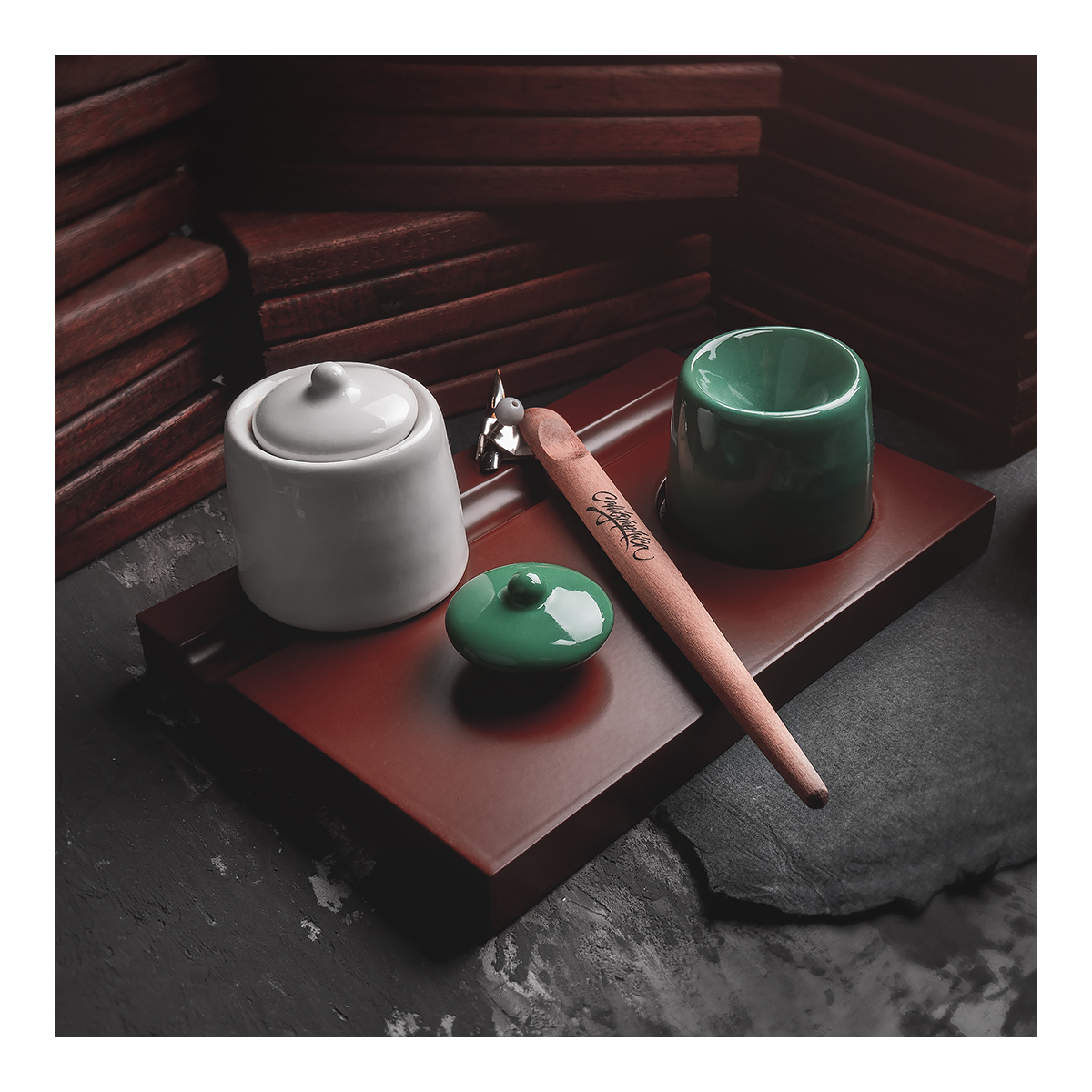 Фарфоровая крышечка для чернильницы, красная
