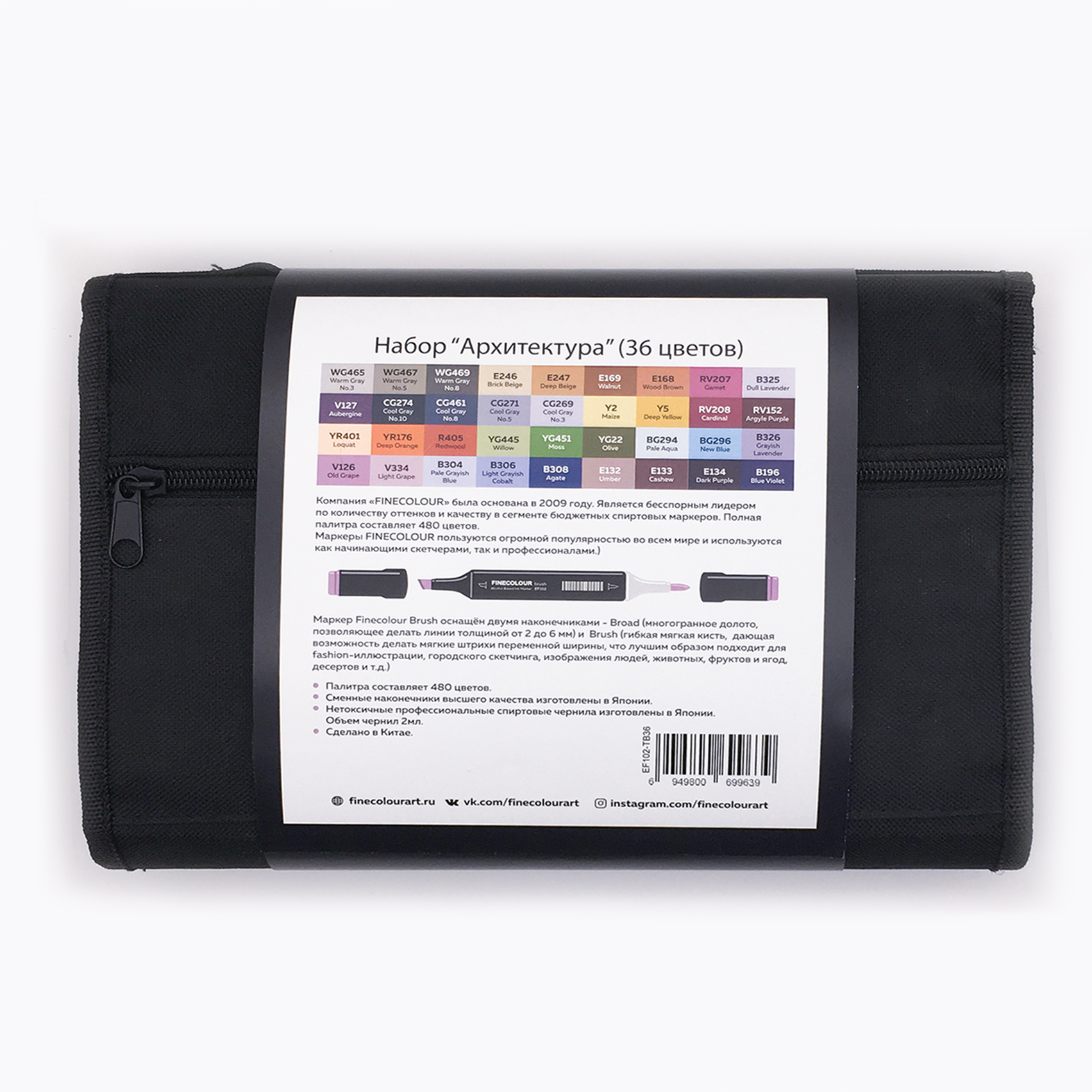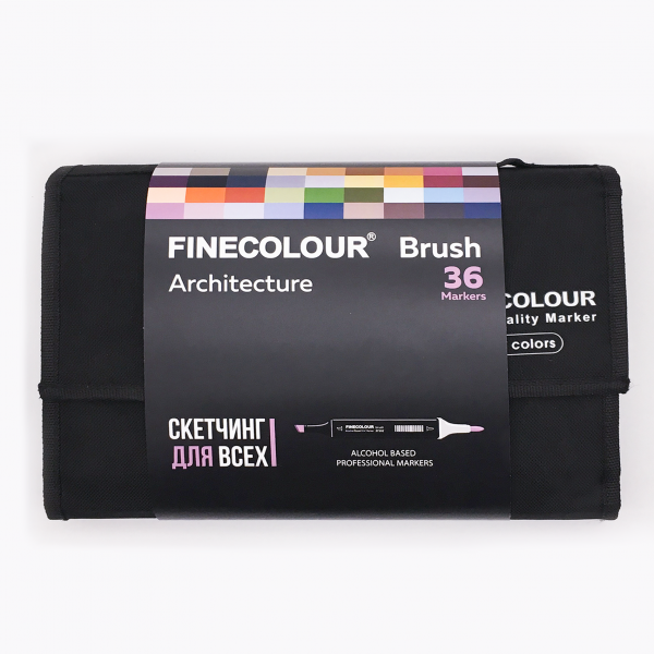 Набор спиртовых маркеров для скетчей Finecolour "Brush" в пенале 36 цветов, Архитектура