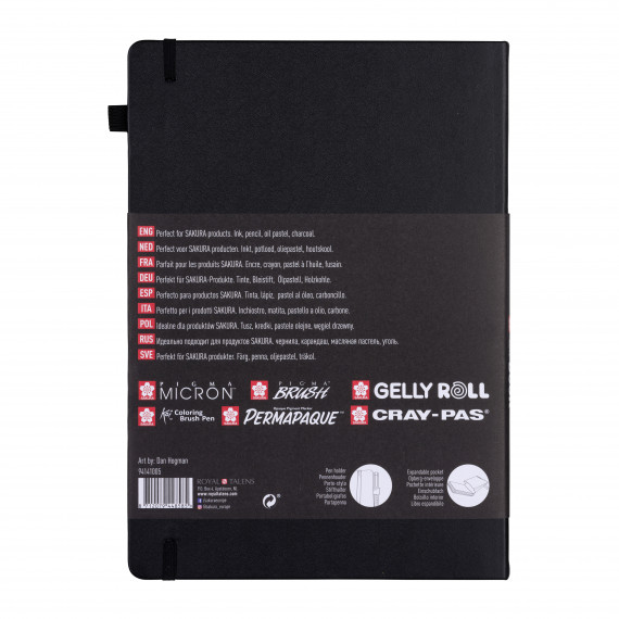 Новые скетчбуки Sakura прекрасно подойдут для путешествий или пленэров.Альбомы подходят для работы с линерами, гелевымии чернильными ручками, карандашами, масляной пастелью. Каждый альбом Sakura Sketchbook имеет эластичную ленту корпуса, держатель для ручки или карандаша и внутренний карман сзади.