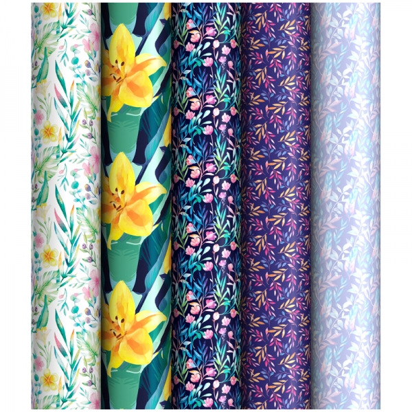 Упаковочная бумага глянц. 70*100см, "Floral", 1 лист, 65г/м2, ассорти 5 дизайнов