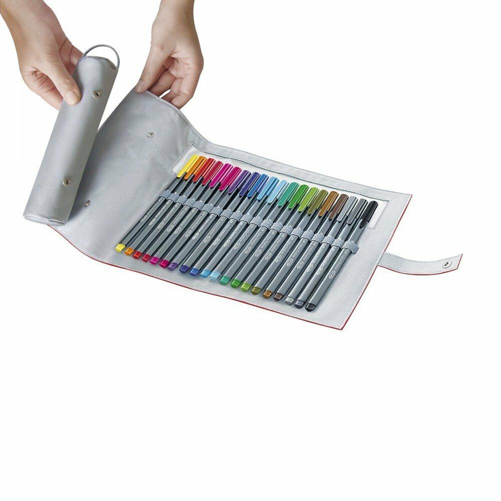Капиллярные ручки эргономичной трехгранной формы. Корпус выполнен из полипропилена, что гарантирует долгий срок службы. Пишущий узел завальцован в металл. Можно на несколько дней оставлять без колпачка, не опасаясь высыхания. Чернила на водной основе отстирываются с большинства видов тканей. Яркий цвет. Система автоматического выравнивания давления предотвращает вытекание чернил на борту самолета. Набор упакован в мягкий скручивающийся пенал на кнопке. Внутри еще один пенал для дополнительных пишущих инструментов. Пенал с ручкой для переноски закрывается на молнию.