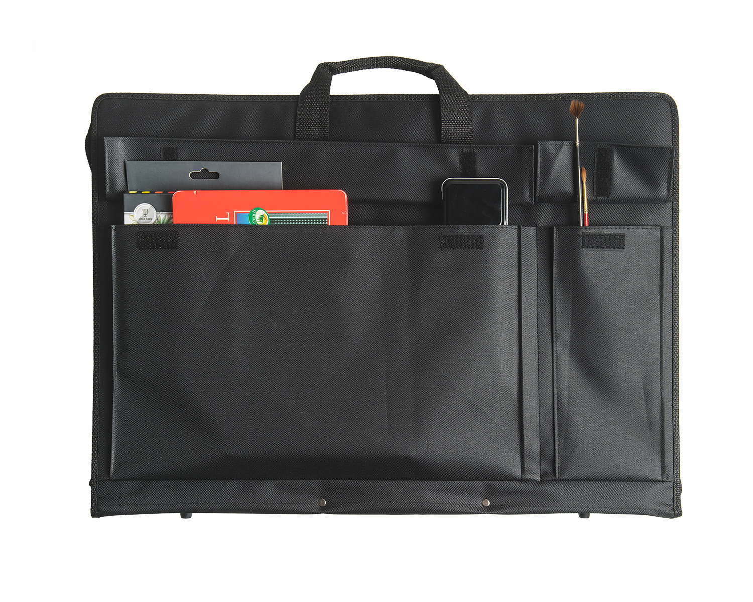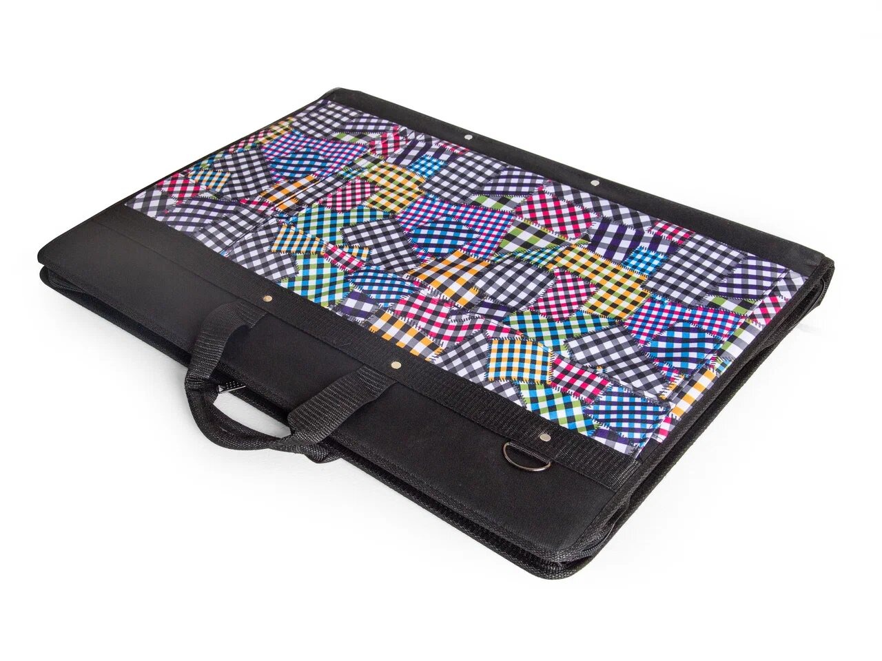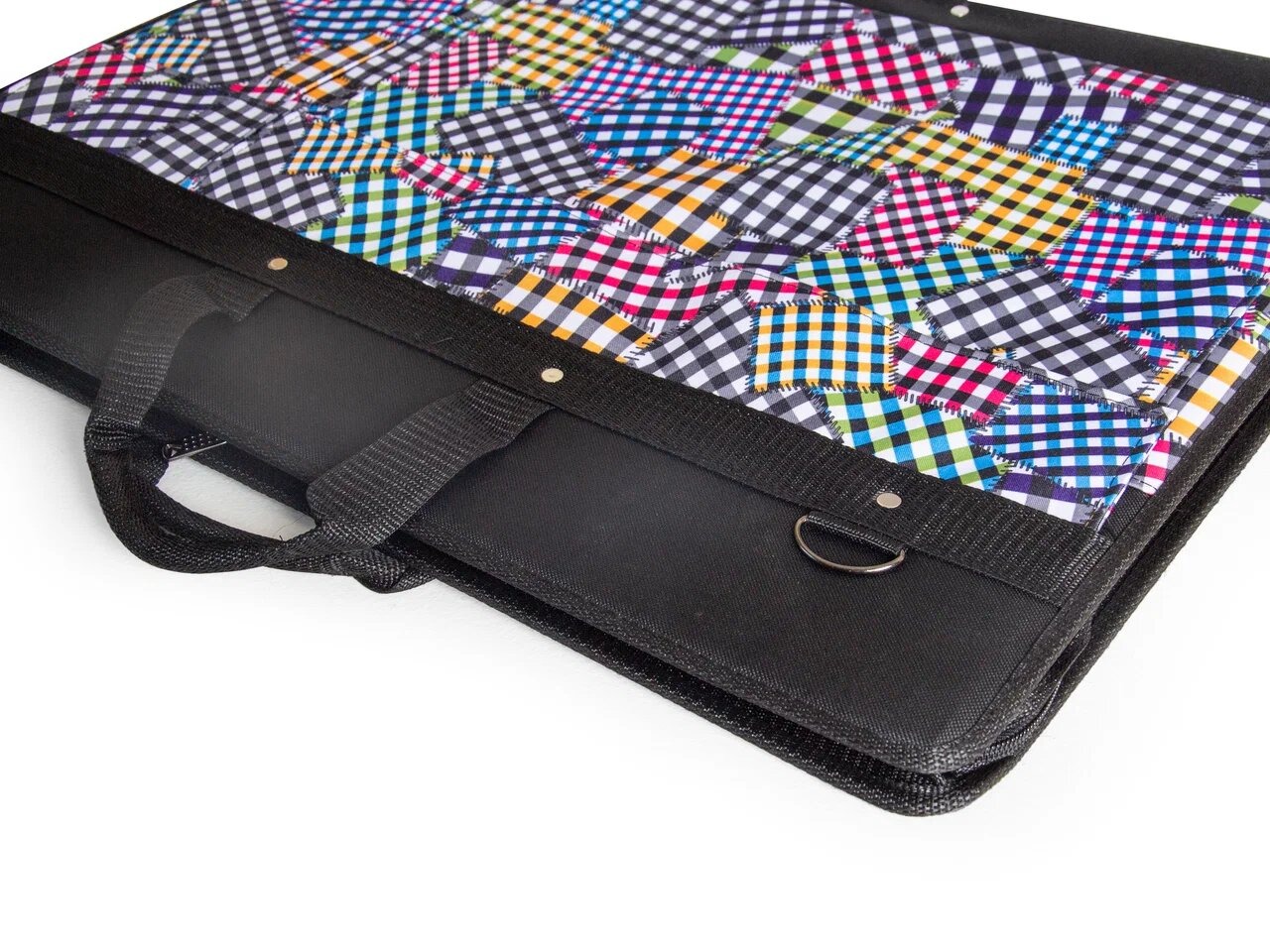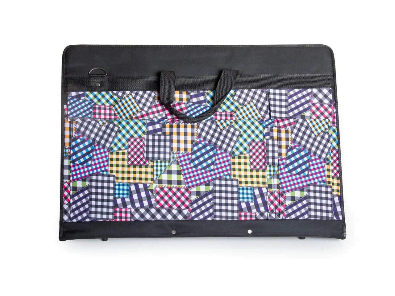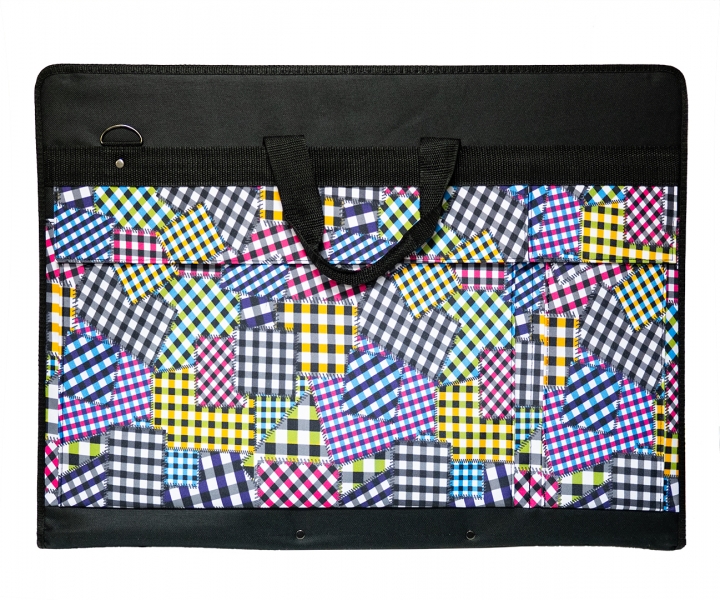 Папка "Художник" цвет "пэчворк" (65*47*6см) Внутри папки съемная двойная перегородка, на внешней стороне папки два объемных кармана с клапаном, узкий 15*31(под кисти) и широкий 49*31(формат А4). Снабжена ручками и регулируемым ремнем для переноски на плече.