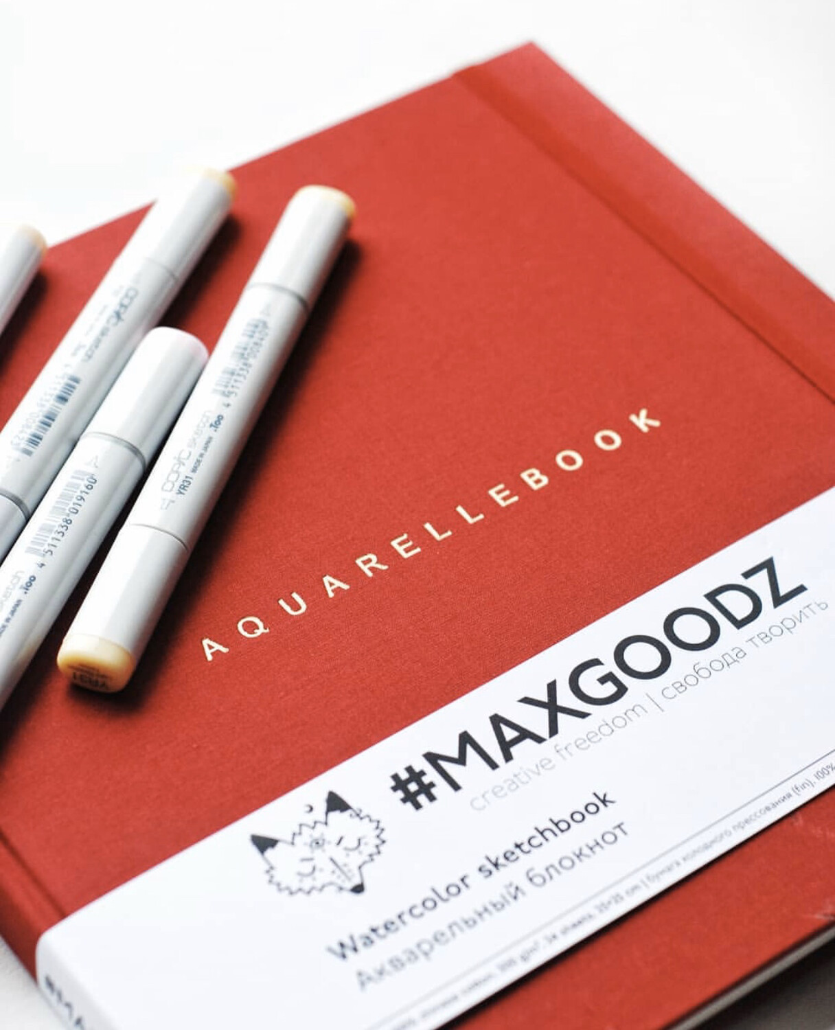 Aquarellebook — ваша идеальная книга для акварели. Плотная хлопковая бумага не содержит кислот и отбеливателей, она навсегда сохранит вашу работу в первозданном виде. Внутри используется китайская 100% хлопковая бумага Baohong. Эта бумага хорошо себя зарекомендовала среди именитых акварелистов и тех, кто только погружается в этот таинственный мир акварели. Хлопковый состав бумаги позволяет работать в сложных многослойных техниках. Средняя фактура Grain Fin помогает добиться высокой детализации в работе, бумага не съедает цвета и ваша работа остаётся яркой. Квадратный формат легко раскроется в панорамный альбом и даст вам ещё больше пространства для экспериментов. Каждый блокнот Maxgoodz собран из качественных европейских материалов и имеет свой серийный номер.