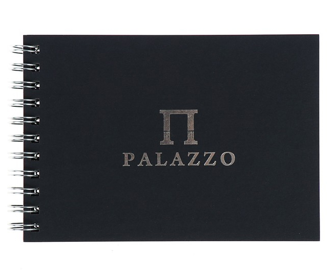 Блокнот для эскизов "Palazzo", 148х210 мм, 160г, 60л, офсет черный, подходит для рисования контрастным материалом: карандашом, гелевой ручкой (белой, серебряной, золотой, флуоресцентной), мелками, рапидографом, аэрографом, маркером.