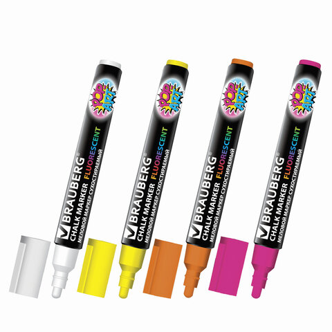 Маркеры меловые "Pop-art", набор 4шт, сухостир., для гладких поверхн., 5мм, АССОРТИ