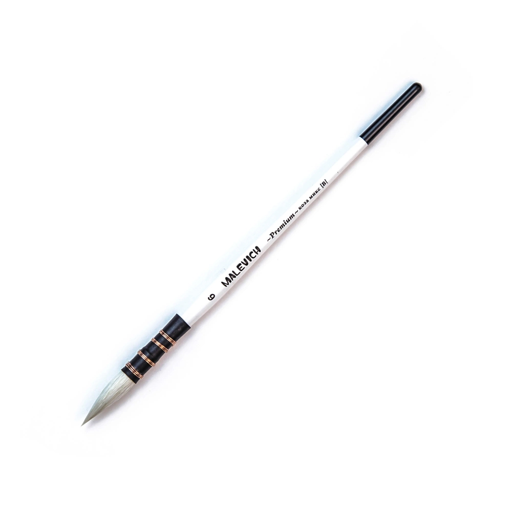 Серия Premium – кисти для профессиональной работы акварелью, каллиграфии и китайской живописи. Микс натурального козьего ворса и специальной мягкой синтетики позволяет получить управляемую кисть, которая держит много воды и краски. Тонкий кончик позволяет прорабатывать мелкие детали, а большой объем пучка удобен для заливок. Французский тип крепления пучка, ручная скрутка. Лакированная березовая ручка длиной 15 см белого цвета.