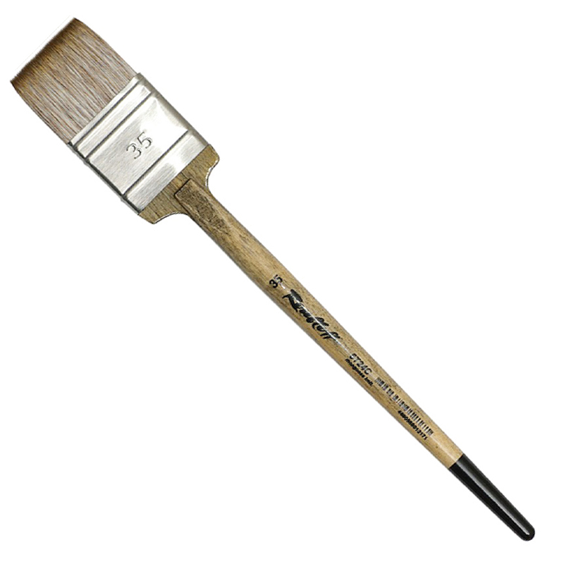 Плоская кисть-флейц из синтетики, имитирующей волос мангуста, имеет более жесткую структуру, чем волос белки, но более мягкую, чем свиная щетина; применима для работы с такими красками, как акрил, гуашь, темпера, тушь и акварель. Такая кисть является незаменимым инструментом для увлажнения бумаги крупного формата, для заливки однородным или градиентным тоном. Ворс хорошо впитывает влагу и также хорошо отдает ее на полотно, что позволяет наносить широкий слой краски одним мазком и добиваться интересной формы пятна лишь поворотом руки
