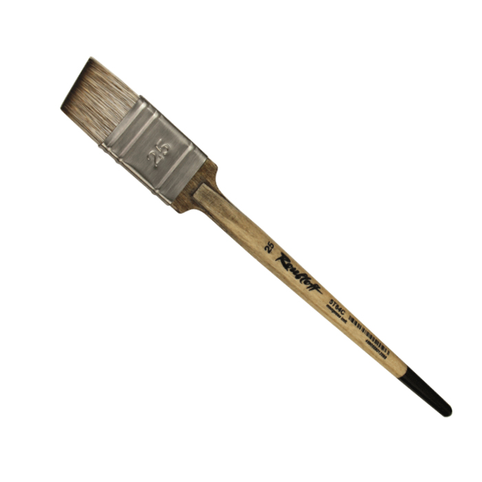 Наклонная кисть-флейц из синтетики, имитирующей волос мангуста, имеет более жесткую структуру, чем волос белки, но более мягкую, чем свиная щетина; применима для работы с такими красками, как акрил, гуашь, темпера, тушь и акварель. Такая кисть является незаменимым инструментом для увлажнения бумаги крупного формата, для заливки однородным или градиентным тоном. Ворс хорошо впитывает влагу и также хорошо отдает ее на полотно, что позволяет наносить широкий слой краски одним мазком и добиваться интересной формы пятна лишь поворотом руки.