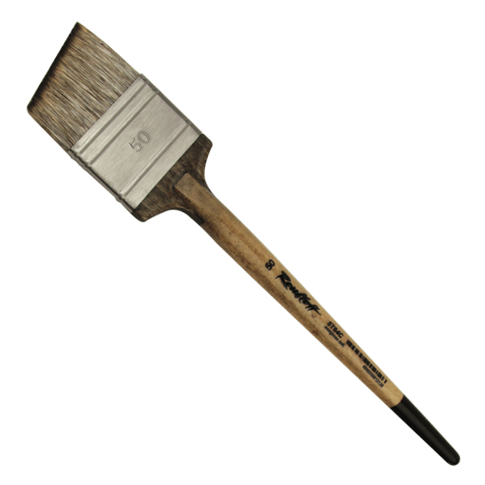 Наклонная кисть-флейц из синтетики, имитирующей волос мангуста, имеет более жесткую структуру, чем волос белки, но более мягкую, чем свиная щетина; применима для работы с такими красками, как акрил, гуашь, темпера, тушь и акварель. Такая кисть является незаменимым инструментом для увлажнения бумаги крупного формата, для заливки однородным или градиентным тоном. Ворс хорошо впитывает влагу и также хорошо отдает ее на полотно, что позволяет наносить широкий слой краски одним мазком и добиваться интересной формы пятна лишь поворотом руки.